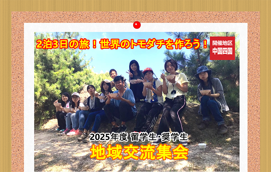 それぞれの地域における外国人留学生と日本人学生が2泊3日の合宿による交流を通じて、人的なつながりを構築し、もって国際親善と相互理解を深めます。